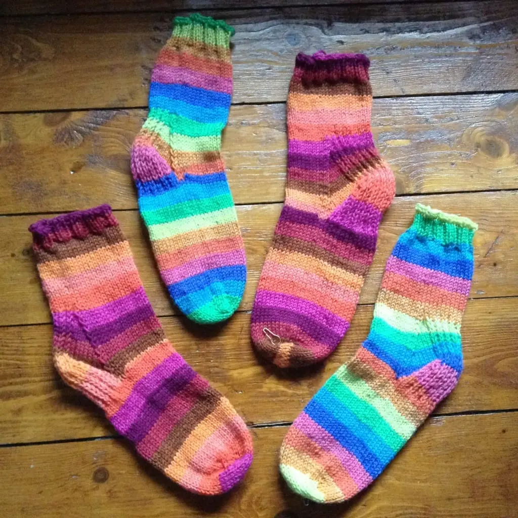 Here are a couple of images of the socks and booties we have enjoyed knitting during our activity breaks at Gartmore House.