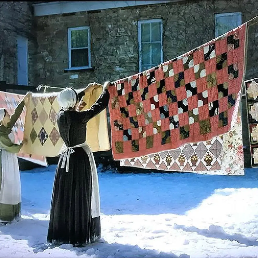 Even in the series, the quilts of Alias Grace function as form of storytelling. They’re a way of preserving history, but more specifically, women’s history, since women traditionally did much of the sewing within a household. According to Grace, a woman should make three quilts before she’s married: a Tree of Paradise, a Flower Basket, and a Pandora’s Box. Although, some versions of this truism replace the Pandora’s Box with a Double Wedding Ring quilt. Thanks to its complicated twists and turns, it’s supposed give the maker all the skills she needs for running a household!