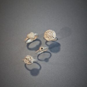 Jo’s work consists of mixed-media jewellery and small-scale sculptural objects. She specialises in casting techniques and often utilises found objects in her practice. Her jewellery has been exhibited in the UK, Europe, America, and China.