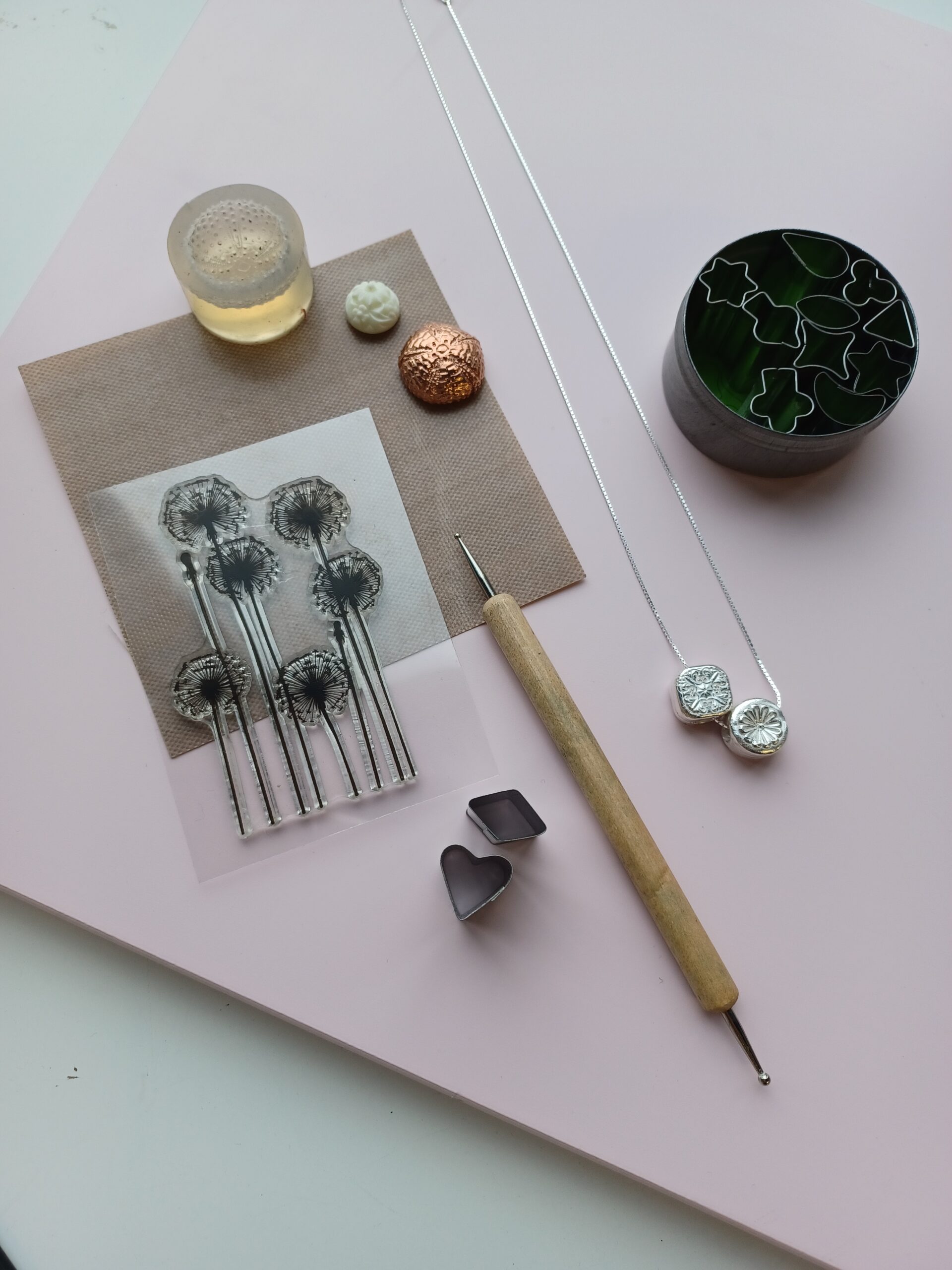 This fun and accessible course is an introduction to Precious Metal Clay jewellery. Precious Metal Clay, or PMC, is a malleable material made of silver particles held in place with an organic binder. It can be hand-modelled and pressed into moulds to create intricately detailed pieces and picks up textures and organic surfaces beautifully. In this course, you will learn how to make silicone moulds from small found objects, such as shells, buttons, and flowers, and how to use these to create silver charms. We'll explore rolled textures and the use of shaped cutters to create elements that you can piece together to make jewellery such as silver earrings and pendants. Using PMC paste you can join these elements to build up your design, and silver wire and findings can be added to create professionally finished pendants, earrings and more. This course is perfect for beginners including those with limited hand strength.