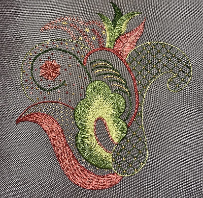 Embroidery is such a huge area that there always seem to be new techniques to try but I often return to crewelwork. I find the wool very forgiving when it comes to shading and blending and I love the feel of drum tight linen twill in a hoop or on a frame.