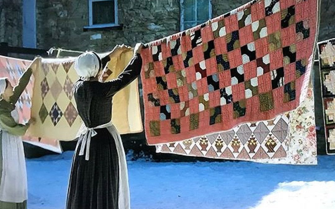 Even in the series, the quilts of Alias Grace function as form of storytelling. They’re a way of preserving history, but more specifically, women’s history, since women traditionally did much of the sewing within a household. According to Grace, a woman should make three quilts before she’s married: a Tree of Paradise, a Flower Basket, and a Pandora’s Box. Although, some versions of this truism replace the Pandora’s Box with a Double Wedding Ring quilt. Thanks to its complicated twists and turns, it’s supposed give the maker all the skills she needs for running a household!
