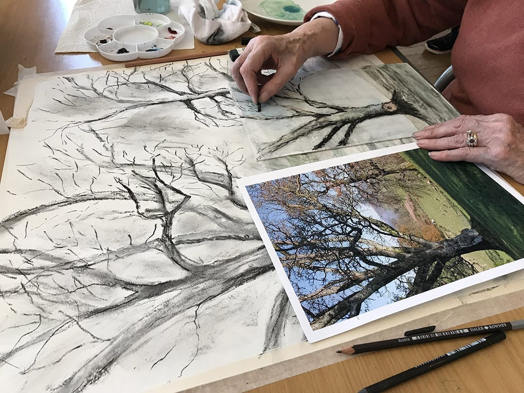 Our friendly and experienced tutors, Nigel Overton & Brigid Collins, will guide you through all the techniques you need to create a fabulous mixed media piece. Try your hand at different techniques using mediums like pencil, watercolour pencils, charcoal, pen and ink, watecolour, acrylics, and even gouache. Throughout your time at Gartmore House, you will develop your painting and drawing skills using a wide range of different media.